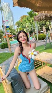 คัพอี ที่จัดให้แบบเต็มตา ด้วยบราลายลูกไม้สีชมพู คู่กับกางเกงยีนขาสั้น ให้ฟีลสาวร่าเริง ยิ้มเก่ง แจ่มใส ตอนยิ้มร่าเริง เราเห็นแล้วถึงกับต้องยิ้มตามกันไปด้วย ดูแล้วมันใจฟูขึ้นมาเลยนะ รอยยิ้มของน้องให้ความรู้สึกแบบนั้น แล้วในเฟสก็เพิ่งจะเห็น Nanny Sixzax ได้ไปทำงานเป็น พริตตี้ ให้กับแบรนด์คอมพิวเตอร์ เจ้าหนึ่ง ที่ไปทำโปรโมตที่อยุธยาด้วยนะ งานมารัวเวอร์