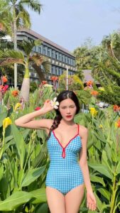 ต่อมาเป็นเรื่องของการ ถ่ายแบบ งานอินฟลู เสื้อผ้า ก็จะเป็นการเอาเสื้อผ้าแบรนด์ของน้องเองนี่แหละมาต่อยอดขายเองใน ไอจี ต่อ ก็ต้องยอมรับว่าเอามาเป็นพรีเซนเตอร์แต่ละชุดแซ่บไม่เบาเลย อย่างเซ็ตนี้ที่ ถ่ายแบบ ริมสระด้วย ชุดว่ายน้ำ แบบเกาะอกสีดำ คู่กับ บิกินี่ สีดำ เข้าชุดกัน
